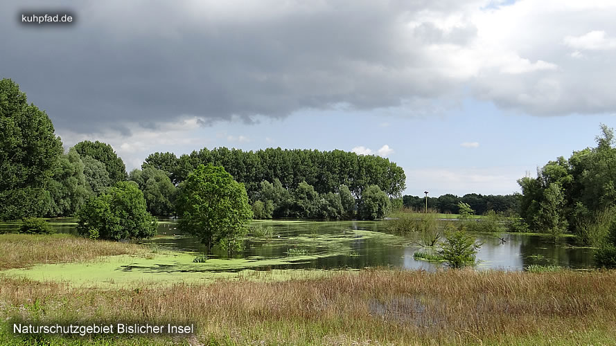 Das Naturschutzgebiet Bislicher Insel war einmal eine Insel im Fluss Rhein, der später an dieser Stelle begradigt wurde, wodurch die Rheinschleife verlandete. Bis heute sind gleichwohl einige Rheinaltarme erhalten geblieben, die über das Grundwasser gespeist werden und bei Hochwasser wieder mit dem Rhein verbunden sind. Diese Gewässer bilden das Zentrum des Schutzgebietes Bislicher Insel. In dieser typischen niederrheinischen Flussaue sind neben den typischen Feuchtwiesen auch Wälder aus Schwarzpappeln, Erlen, Eschen und Weiden zu finden. Infolge einiger Renaturierungsarbeiten in den 1980er Jahren gilt das Naturschutzgebiet Bislicher Insel heute als eine der schönsten Flussauen-Landschaften Deutschlands.