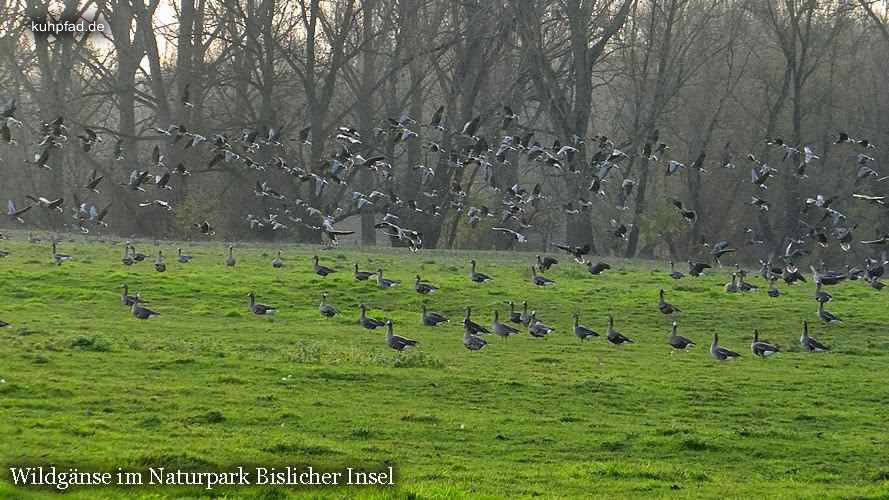 Internationale Bekanntheit erreichte das Schutzgebiet, als vor einigen Jahren in einer spektakulären Aktion Zwerggänse an den Niederrhein gelotst wurden. Nicht weniger interessant sind die Schwärmen von Wildgänsen, die alljährlich bei ihren Wanderflügen am Niederrhein landen. Eine feste Heimat hingegen haben zahlreiche andere Wasservögel und Vögel in dieser wunderschönen Auenlandschaft gefunden. So zum Beispiel kann man bei einer geführten Exkursion See-und Fischadler oder auch den Weißstorch sehen.