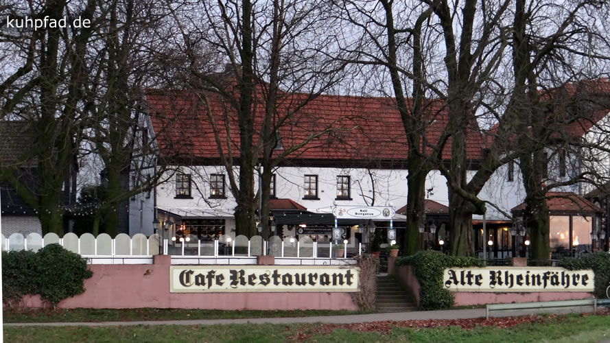 Das Cafe Restaurant Alte Rheinfähre liegt unmittelbar am Rhein nur wenige Schritte von der historischen Kaiserpfalz in Kaiserswerth entfernt. Das Restaurant bietet eine gute Auswahl an Gerichten, so dass für jeden etwas dabei sein sollte. Empfehlenswert ist zum Beispiel der Elsässer Flammkuchen oder auch das Holzfäller Steak. In der Saison von Mai bis Juni sind auch die Spargelgerichte sehr gefragt. Genieße das schöne Ambiente des Biergartens bei Kaffee und Kuchen oder lasse in den Sommermonaten den Abend unter Kastanien bei einem kühlen Glas Bier oder Wein ausklingen.