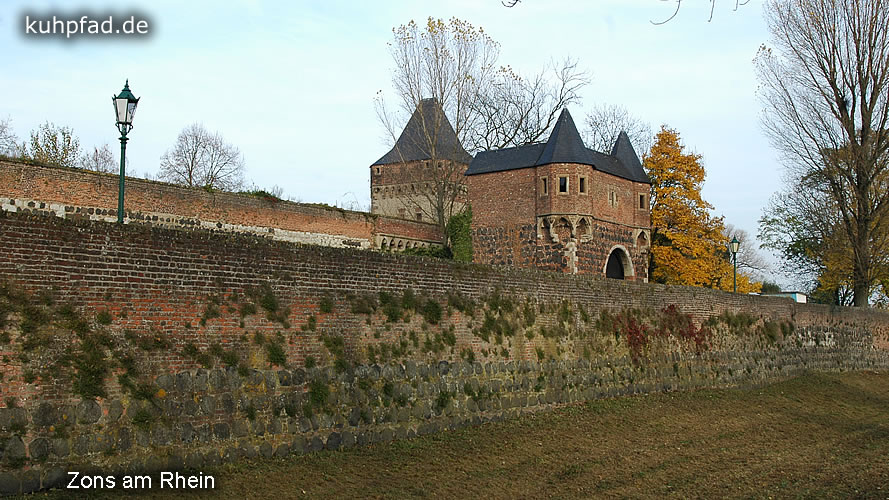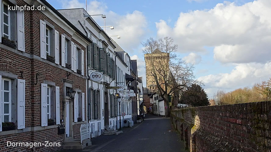Ein Muss für jeden Besucher ist der Ortsteil Zons, in dem bis zum 18. Jahrhundert der Rheinzoll erhoben wurde. Aus dieser Zeit stammen auch die mittelalterlichen Befestigungsanlagen, die sehr sehenswert sind. Die Landesburg Zons , auch als Burg Friedestrom bezeichnet, ist ein Teil dieser Anlage und wurde wie weite Teile des historischen Stadtkerns saniert. Heute ist Zons das kultur-historisches Aushängeschild der Stadt Dormagen. Zu den weiteren historischen Sehenswürdigkeiten der Stadt Dormagen gehört das Kloster Knechsteden mit seiner dreischiffigen Basilika aus dem 12. Jahrhundert .
