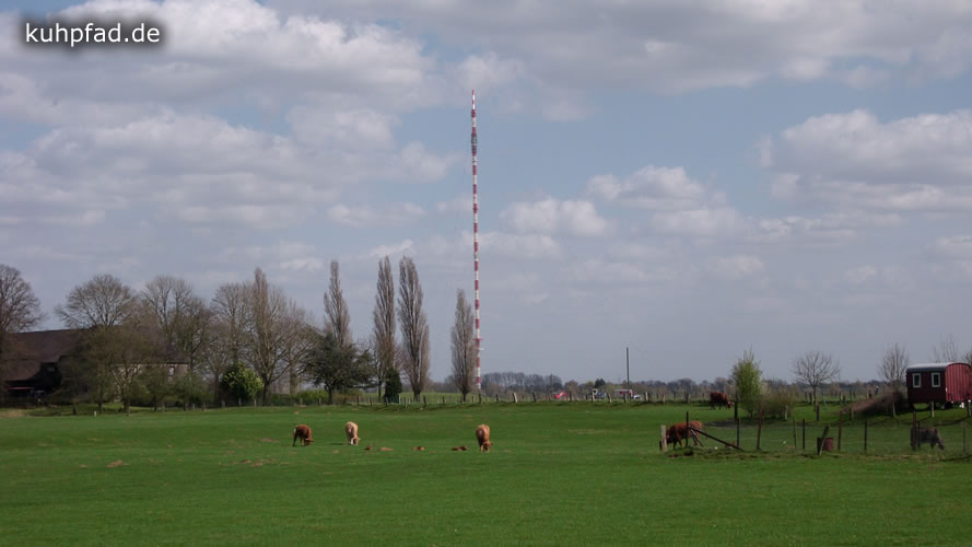 Von Weitem aus sichtbar ist ebenfalls der Sender Wesel, ein Stahlfachwerkmast. Mit über 320 Meter Höhe gehört er zu den höchsten Bauwerken in Nordrhein Westfalen.