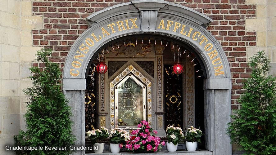 Das Gnadenbild (Heiligenbild), das die Mutter Gottes mit weit ausladendem Mantel sowie mit dem Jesuskind auf dem linken Arm und einem Zepter in der Rechten Hand und einer Krone auf dem Kopf zeigt, befindet sich innerhalb der Gnadenkapelle. Es ist allerdings auch durch ein Fenster von aussen zu betrachten. Pilger aus ganz Europa reisen nach Kevelaer, um in der Gnadenkapelle die Jungfrau Maria um ihren Beistand oder Fürbitte zu bitten. Der Kapellenplatz ist einer der schönsten Orte am Niederrhein.