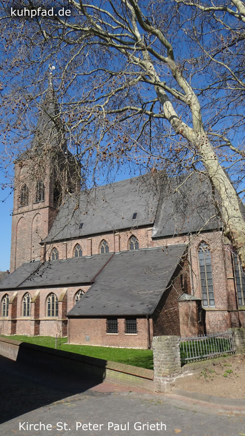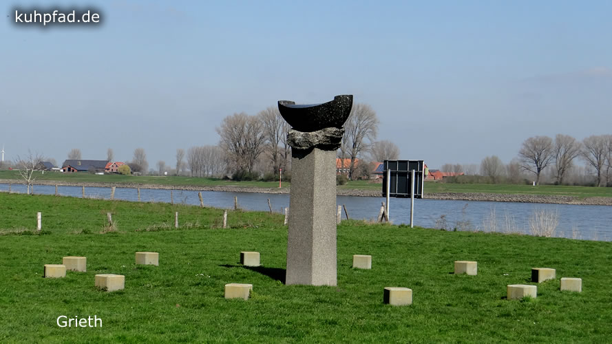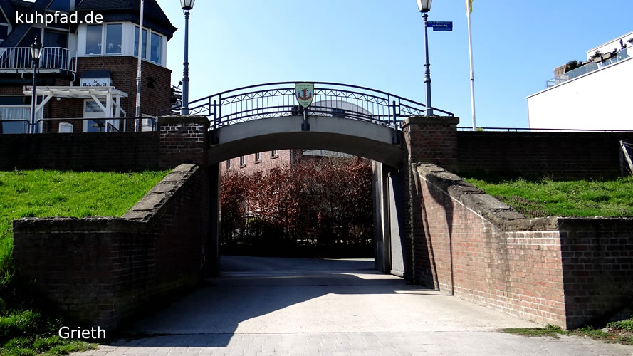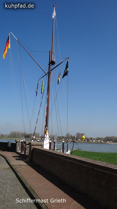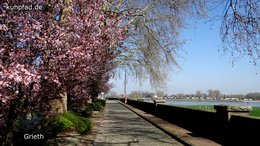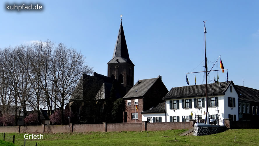 Geschichte: 1250 gegründet als Stadt Grieth, heute Ortsteil der Stadt Kalkar