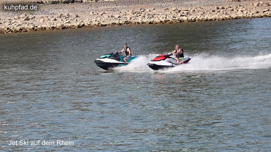 Jetski Fahren auf dem Rhein , in einigen Wassersportrevieren am Niederrhein kann man Jetskifahren. So zum Beispiel ist das Befahren von Binnenwasserstraßen wie den Rhein mit Jetskis nur auf freigegebenen Strecken erlaubt. Das Jetskifahren unterliegt zudem zahlreichen Bestimmungen, so ist das Fahren mit dem Jetski nur auf ausgewiesenen Strecken auf dem Rhein erlaubt. Diese sind mit dem Tafelzeichen E22 gekennzeichnet. Erlaubte Strecken am Niederrhein sind u.a. Rheinkilometer 666,50 – 667,00 & 750,00 – 753,00 linkes Ufer.[A.o.G.] Beachte auf jeden Fall die Beschilderung vor Ort und lasse den Jetski nur an dafür ausgewiesenen Stellen ins Wasser. Außerdem ist das Fahren nur in der Zeit von 07:00 bis 20:00 Uhr erlaubt, jedoch nicht vor Sonnenaufgang und nicht nach Sonnenuntergang.