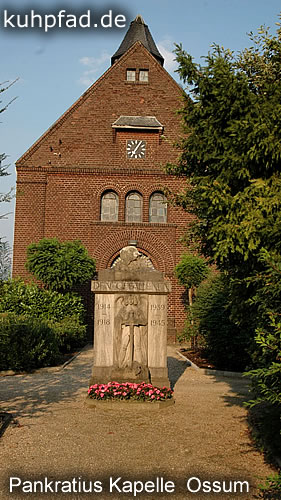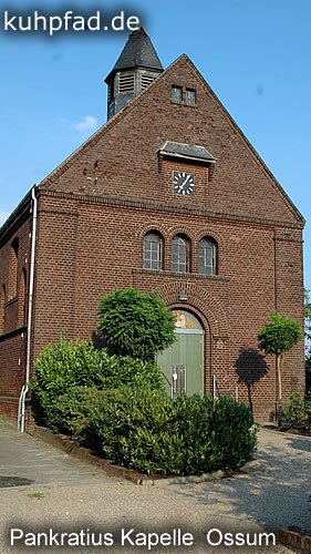 Die einschiffige Kapelle St. Pankratius Ossum in Meerbusch-Ossum wurde aus Back- und Tuffstein erbaut, und erfuhr im Laufe ihrer Geschichte einige Erweiterungen. Der romanische Kern ist bis heute erhalten. Im Inneren der Kapelle fallen als erstes die farbigen Kirchenfenster ins Auge. Aber auch die Kirchenbänke sowie der dreiteilige Beichtstuhl sind sehenswert. Vor der Kapelle steht zudem ein Gedenkstein. Die Kapelle gehört zur Pfarrei Hildegundis von Meer, Meerbusch