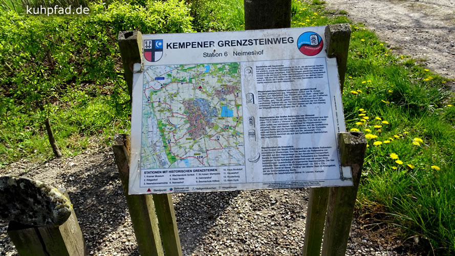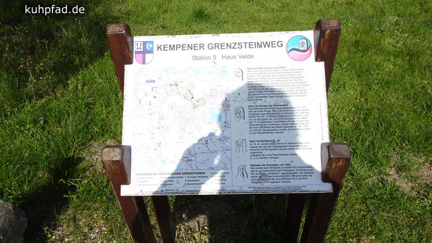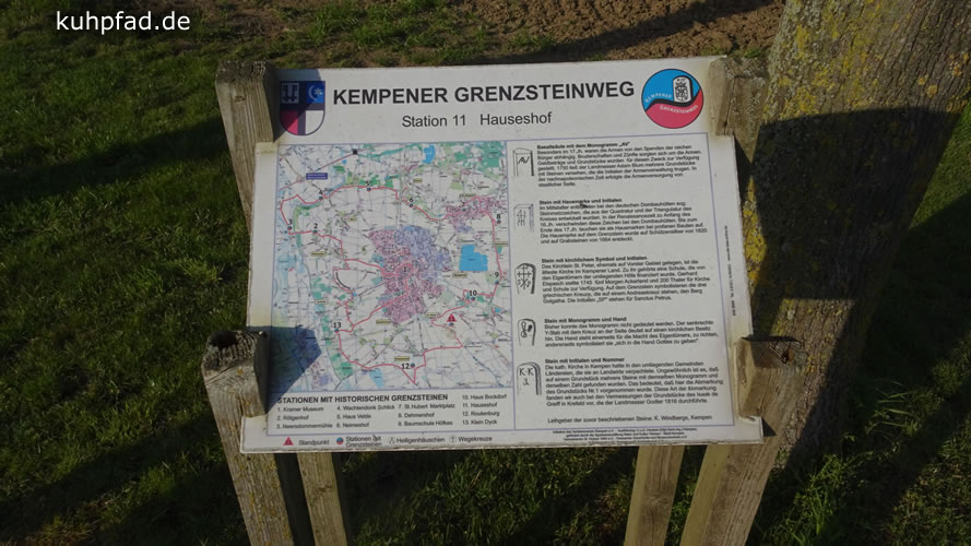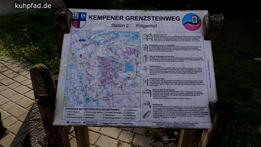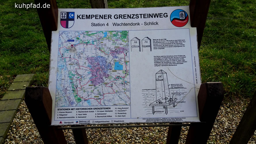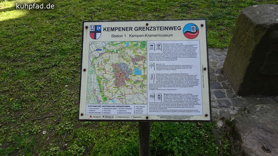 Es handelt sich um einen etwa 40 Kilometer langen Rundweg, der auch in Teilen erkundet werden kann. Beginnen kann man von jeder Station. Informationstafeln an den jeweiligen Stationen geben zudem Auskunft über die Grenzsteine, die ehemalige Landesgrenzen markiert hatten. Zu erkennen ist der Grenzsteinweg an dem Logo mit Wappenstein .