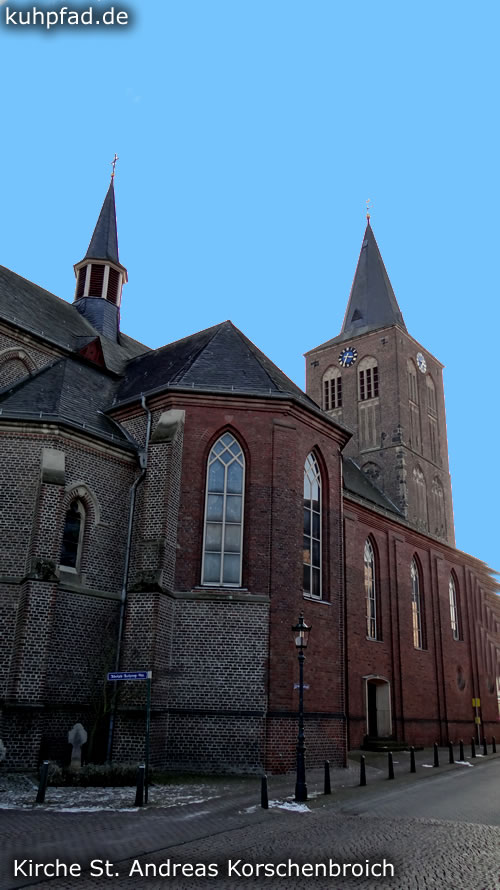 Kirche St. Andreas Korschenbroich, die sehenswerte Kirche steht im Zentrum der Stadt Korschenbroich und ist ein Ort der Ruhe, Andacht und Gemeinschaft. Der heutige Kirchbau wurde 1892 geweiht und erfuhr im Laufe seiner Geschichte, Zerstörungen, Veränderungen und Wiederaufbauten. Heute gehört die Kirche zu den Wahrzeichen der Stadt.