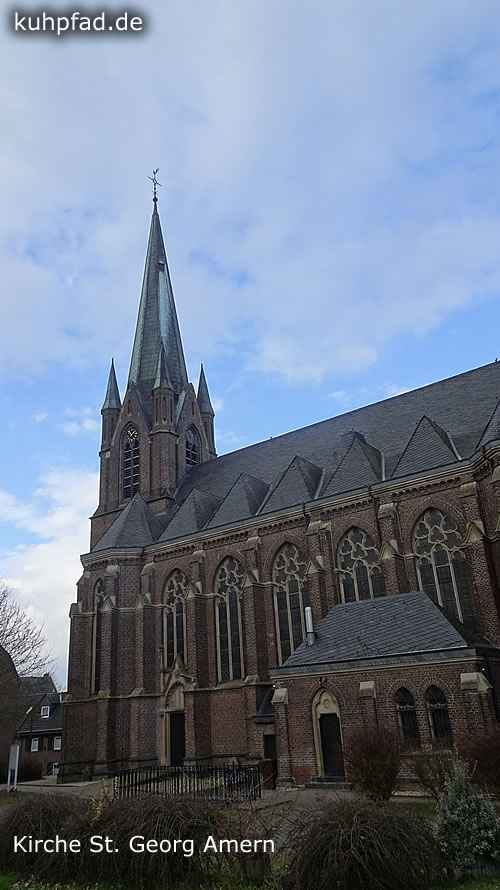 Kirche St. Georg Amern, sie ist eine sehenswerte Kirche im Ortsteil Amern der Gemeinde Schwalmtal und dient als Pfarrkiche der Pfarrei St. Matthias Schwalmtal. Sie wurde im neugotischen Stil im Jahr 1880 fertiggestellt. Das Backsteingebäude ist typisch für die Region Niederrhein. Der hohe Turm überragt die Dächer des Ortsteils.