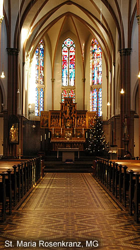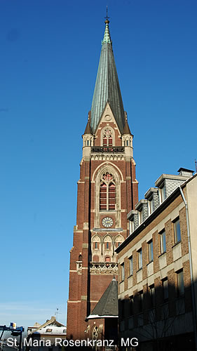 Die Kirche St. Maria Rosenkranz Mönchengladbach am Niederrhein ist eine mehr als 150 Jahre alte neugotische Kirche und gehört zur Pfarre St. Vitus. Die Gemeindekirche St. Maria Rosenkranz besitz nicht nur einige Altare , sondern auch wunderschöne Kirchenfenster.