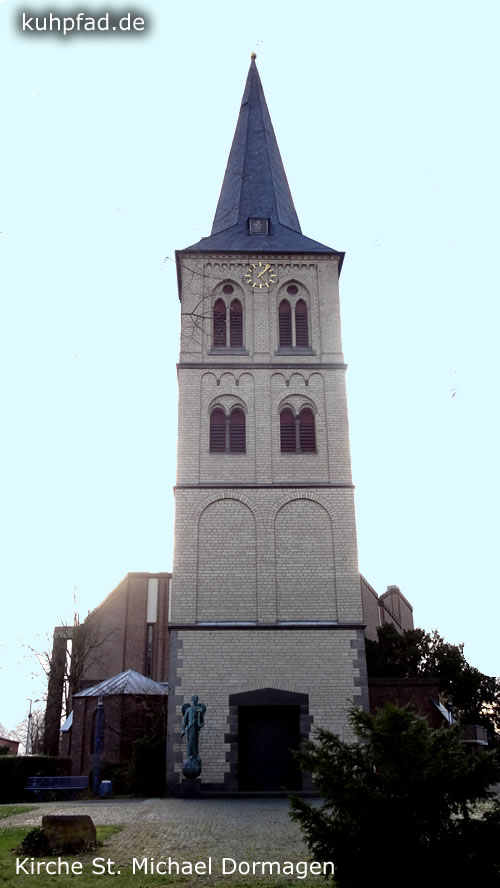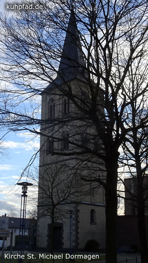 Kirche St. Michael Dormagen, die katholische Pfarrkirche steht im Zentrum der Stadt Dormagen und insbesondere ihr Turm ist sehenswert. Die Kirche ist heute ein Ort der Ruhe, Andacht und Gemeinschaft. Auf dem Gelände der Kirche wurden zudem Spuren aus der Römerzeit in Dormagen gefunden.