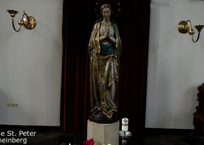 Kirche St. Peter Rheinberg ist eine katholische Pfarrkirche in der Stadt Rheinberg und sehenswert. Die Geschichte der Kirche reicht zurück bis ins 13. Jahrhundert seither erfuhr die Kirche einige Zerstörungen und Instandsetzungen. Die dreischiffige Basilika mit ihrem fünfgeschossigen Westturm beeindruckt bis heute . Sehenswert sind auch der Hochaltar, die barocke Kanzel sowie Tafelbilder.