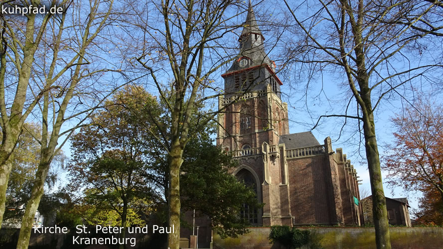 Kirche St. Peter und Paul ist die bekannteste Kirche in Kranenburg am Niederrhein. Die spätgotische Stifts- und Wallfahrtskirche trägt heute den Namen St. Peter & Paul. Zu ihr pilgern Gläubige schon seit mehr als 700 Jahren, um vor dem Kranenburger Kreuzheiligtum zu bitten und zu beten. Höhepunkt der alljährlichen Kreuzwallfahrt ist das Kreuzfest im September, währenddessen das Kreuzheiligtum durch den Ort getragen wird.