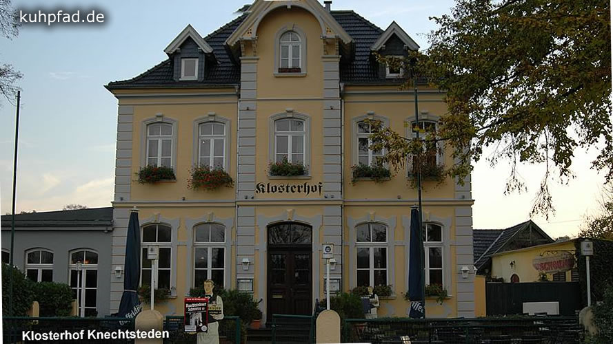 Das Restaurant Klosterhof Knechtsteden liegt in der idyllischen Landschaft des Niederrhein in unmittelbarer Nähe zum gleichnamigen Kloster. Das Restaurant befindet sich in einem alten Gasthof und bietet niederrheinische Spezialitäten sowie kreative Köstlichkeiten. Probiere doch einmal den Knechtstedener Senfrostbraten oder ein Steak und trinken dazu ein kühles Glas vom Knechtstedener Schwarzbier. Sehr beliebt sind auch die Wildsau-Vesper im Bullenstall vom Kulturhof Knechtsteden. In den Sommermonaten bietet die große Terrasse zahlreiche Plätze um laue Abende zu genießen.