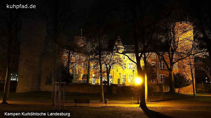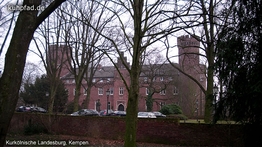 Die kurkölnische Landesburg Kempen liegt im historischen Altstadtkern der Stadt und wurde um 1400 erbaut. Im Laufe seiner Geschichte wurde die Burg zerstört und wieder aufgebaut. Heute strahlt die Kempen Landesburg im neuen Glanz und alljährlich zum Martinszug im Licht eines wunderschönen Feuerwerks. War die Burg ehemals Zentrum der Stadtbefestigungsanlagen, befindet sich heute in dem neugotischen Backsteingebäuden das Stadtarchiv sowie der Verein Kulturraum Niederrhein e.V. Von der Stadtbefestigung sind sowohl Teile der Stadtmauer als auch das Kuhtor, das ehemalige Haupttor der Stadtmauer gut erhalten.