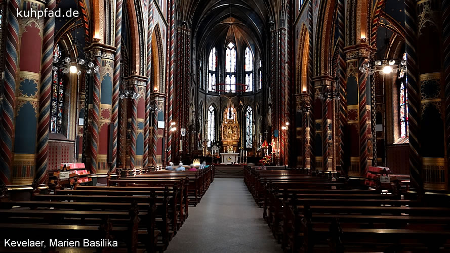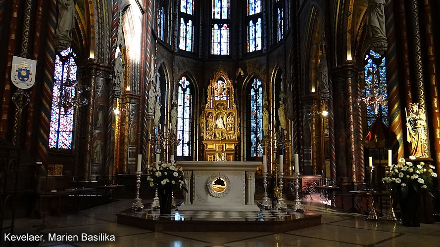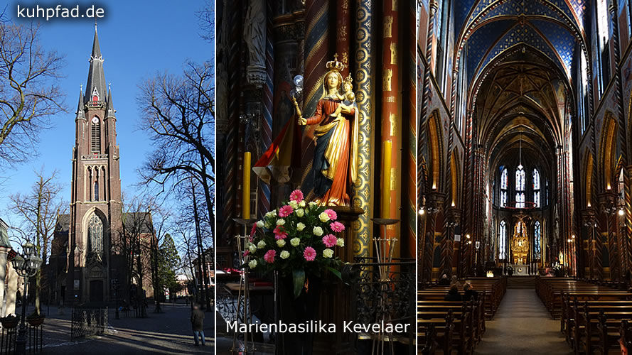 Die Marienbasilika Kevelaer wurde zwischen 1858 und 1864 im neugotischen Stil erbaut und beeindruckt mit ihrem 90 Meter hohen Westturm. Die Innengestaltung weist zahlreiche Gemälde aus dem biblischen Leben Jesus Christus auf, die Friedrich Stummel mit seinen Kunstschülern geschaffen hatte. Heute zählt die Kirche und die Gnadenkapelle, die vor der Kirche steht, als einer der wichtigsten Wallfahrtsstätten weltweit. Eine Besichtigung des Kapellenplatzes, an dem die Basilika sowie die Gnadenkapelle und Kerzenkapelle steht, bei einem Aufenthalt am Niederrhein nicht versäumt werden.