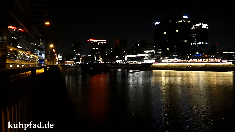 Kommen tagsüber insbesondere Menschen in den Medienhafen, um die Architektur der manchmal einzigartigen Gebäude zu sehen, sind es abends meist Gäste der ansässigen Restaurants & Bars, die sich in das Nachtleben im Medienhafen stürzen. Inzwischen bietet das Angebot an Restaurants, Bars & Clubs im Medienhafen eine gute Alternative zur Altstadt, die insbesondere am Wochenende sehr voll werden kann. Düsseldorfer wissen das schon lange zu schätzen und genießen das vielfältige Angebot an Speisen der Restaurants. Hier kannst du vom schmackhaften Eintopf bis hin zu einem mehrgängigen Sternemenue nach Gusto speisen. In den Sommermonaten ist zudem die Außengastronomie sehr beliebt. Der Medienhafen bietet aber auch die Möglichkeit einfach nur die Seele baumeln zu lassen. So kann man zum Beispiel entlang der Promenade und über die Hafenbrücke einen Spaziergang machen.