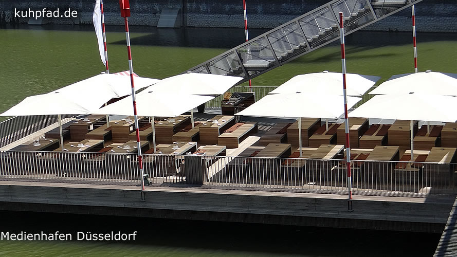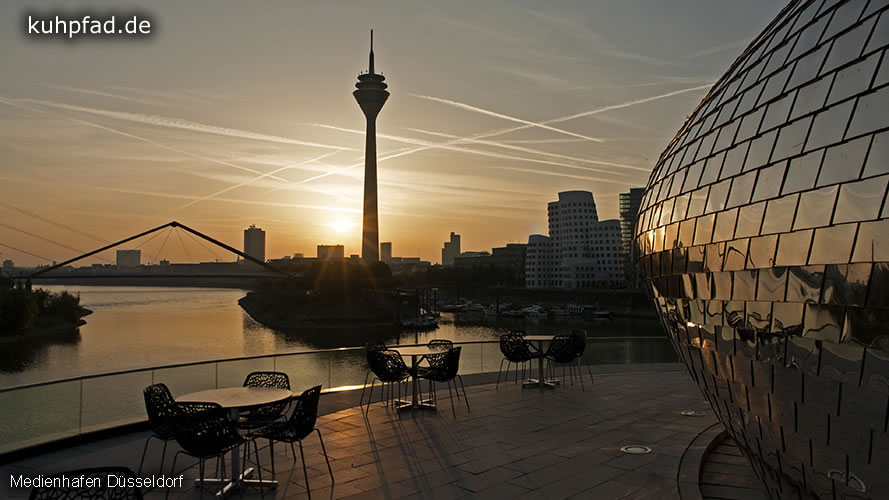 Der Düsseldorfer Medienhafen liegt zu Füßen des Rheinturms (Fernsehturms) und hat sich im Laufe der letzten Jahre zu einem beliebten Business- Standort und Szeneviertel entwickelt. Verlassen die Mitarbeiter der ansässigen Büros ihre Arbeitsplätze, bleibt der Medienhafen nicht verwaist und menschenleer zurück, wie das vielerorts in Bürovierteln geschieht. Im Medienhafen ist auch abends ein buntes Leben vorzufinden. So locken einerseits die zum Teil spektakulären und architektonisch außergewöhnlichen Gebäude Besucher von nah und fern an den Rhein, und andererseits lädt das vielfältige Restaurant- & Clubangebot zum Ausgehen ein.