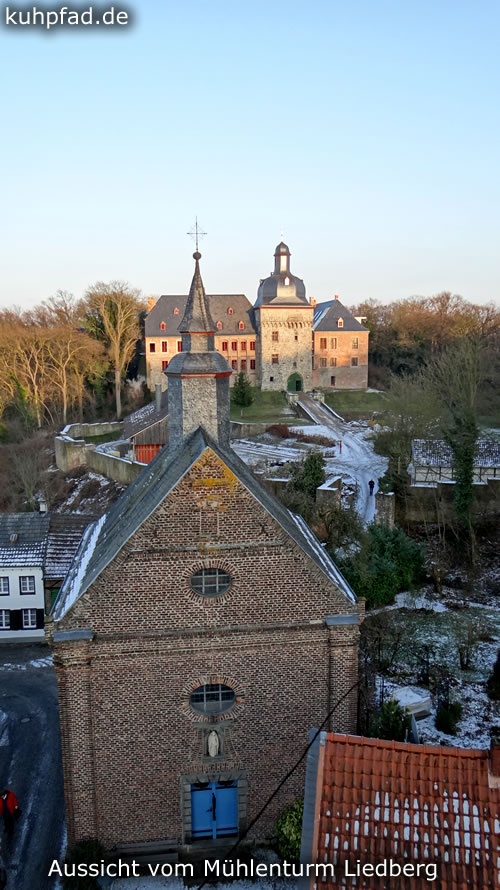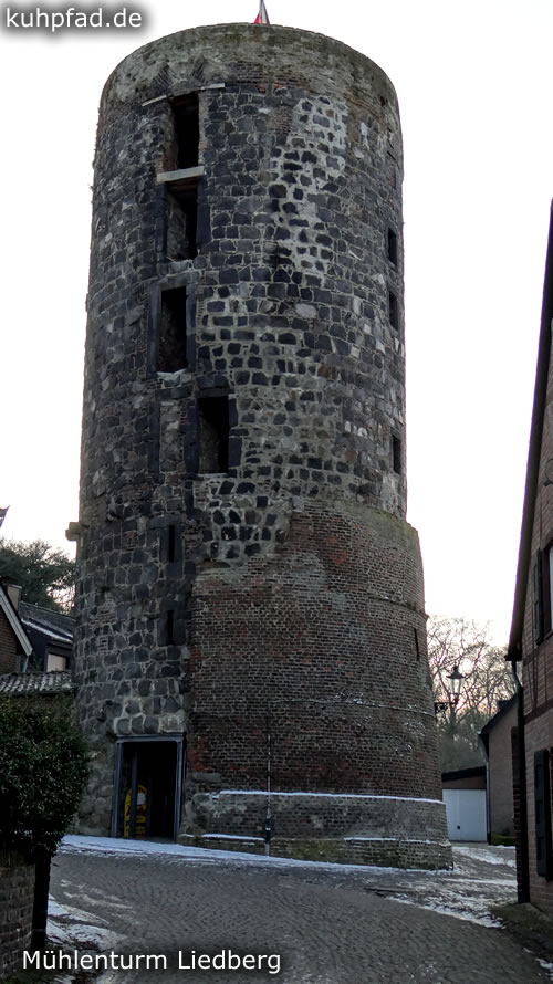 Mühlenturm Liedberg, der historische Mühlenturm im gleichnamigen Ortsteil Liedberg von Korschenbroich ist sehenswert und bietet zugleich eine schöne Aussicht auf die Umgebung und das Schloss Liedberg. Über eine Wendeltreppe kommt man nach oben.