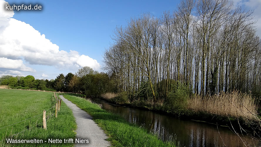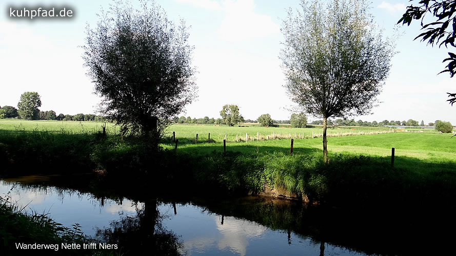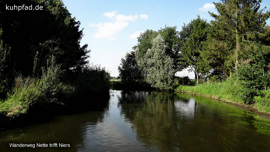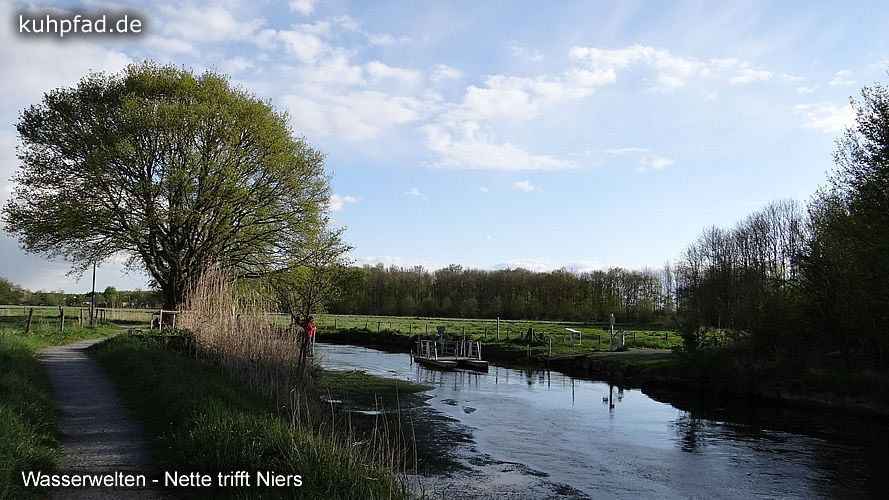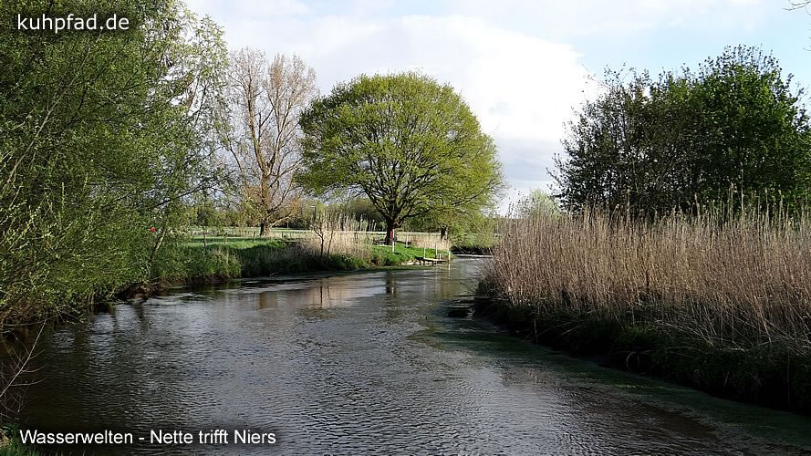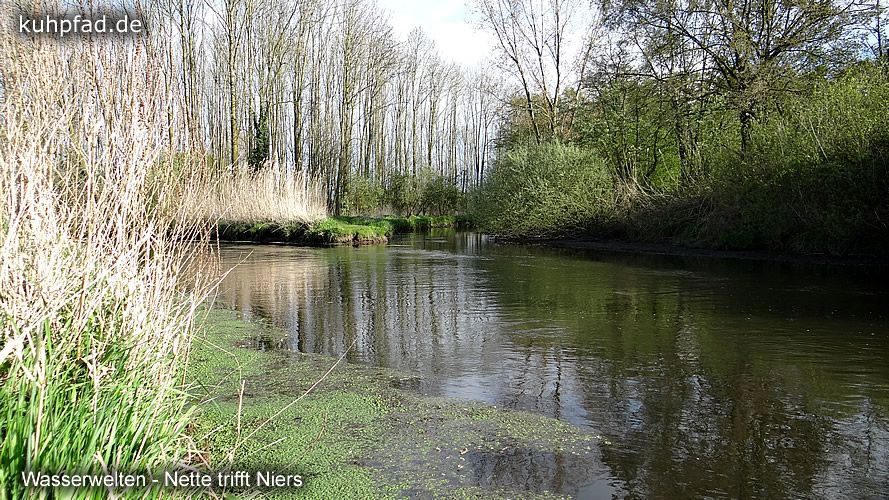 Nette Trifft Niers , die so genannten Wasserblicke am Niederrhein bieten eine besondere Aussicht in die niederrheinische Natur. Einer dieser Wasserblicke, der Nette Trifft Niers , befindet sich kurz hinter Wachtendonk. Hier mündet das kleine Flüsschen Nette in das nicht wesentlich größere Flüsschen Niers.