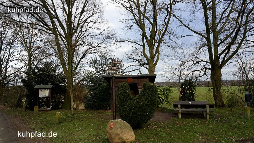 Oermter Rundwanderweg, dieser etwa 5,5 kilometerlange Wanderweg befindet sich am Niederrhein und führt Wanderer sowohl um die kleine Ortschaft Oermten als auch um/über den Oermter Berg. Starten kann man diesen Rundweg an verschieden Stellen. Empfehlenswert sind der Parkplatz am Oermter Berg und der so genannte Mehrgenerationenplatz am Letmannsdyk. Der Wanderweg führt durch Wald, über Felder und Wiesen, durch die beschauliche Ortschaft und an einigen schönen Plätzen vorbei. Ein schöner Ort ist zum Beispiel die Schönstattkapelle. Bei Kindern beliebt sind der Spielplatz, sowie die lange Rutsche und die beiden Tiergehege. Der Barfusspfad lädt dazu ein, die Schuhe auszuziehen und die verschiedenen Materialien unter den Füßen zu spüren. Der Wanderweg selbst ist stellenweise asphaltiert an anderen Stellen ein Gemisch aus Sand und Kies oder Waldboden. Fahr mal raus an den Niederrhein und entdecke die flache Landschaften, die sich hier ausnahmsweise einmal erhöhen (68 Meter über NN).
