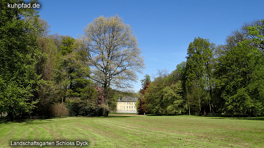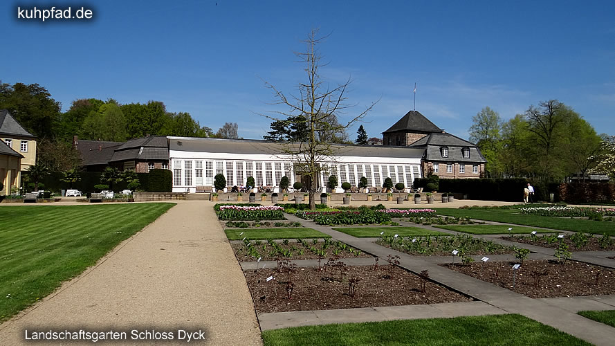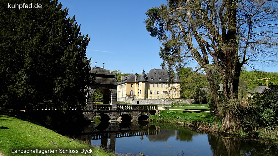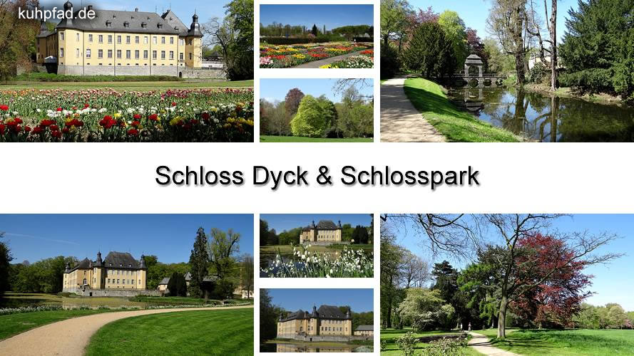 Schloss Dyck ist eine ehemalige Wasserburg der Herren Dyck, die im 17. Jahrhundert zu einem Schloss umgebaut wurde. Heute präsentiert sich das Schloss Dyck, das viele Höhen und Tiefen erlebt hat, im Baustil der späten Renaissance. Der vierflügelige Schlosstrakt ist von imposanten Türmen eingefasst, und um die Schlossanlage befindet sich bis heute die Wasseranlagen, der ehemaligen Wasserburg. Das Innenleben des Schlosses wurde im 18. Jahrhundert prunkvoll umgestaltet. So schmücken Deckengemälde, Stuck und Schnitzereien einzelne Räume des Schlosses, die der Öffentlichkeit allerdings nur zu wenigen Zeiten zugänglich sind.