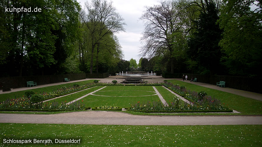 Der Schlosspark Benrath ist eine bedeutende historische Parkanlage in Düsseldorf und gehört zum Ensemble Schloss Benrath, was sehr sehenswert ist. Der ausgedehnte Schlosspark Benrath , der seit 1996 unter Naturschutz steht, erstreckt sich nicht nur über mehr als 600.000m², sondern birgt wunderschöne alte Bäume, eine zentrale Wasserfläche, sowie Skulpturen. Vom Hauptgebäude des Schlosses erstrecken sich die Hauptwege des Parks. So gelangt man zu den unterschiedlich gestalteten Gärten. Der Jagdpark zum Beispiel lädt zu Spaziergängen bis an den Rhein ein. Kleine Plätze, Rondells, laden außerdem immer mal wieder zum Verweilen ein.