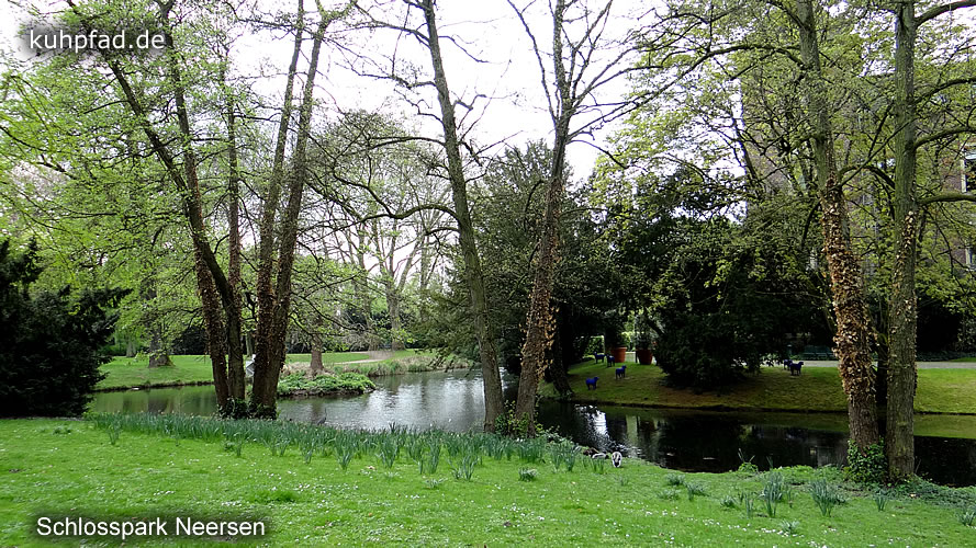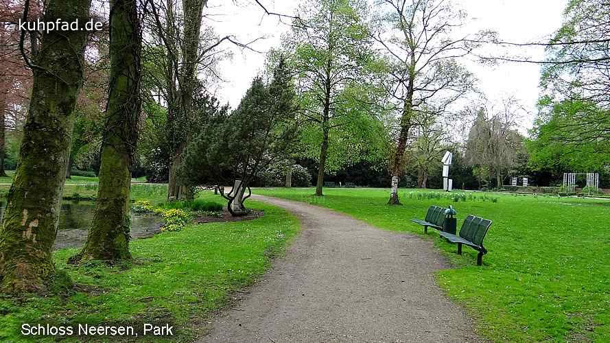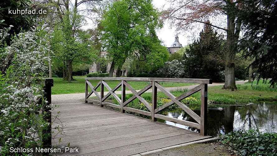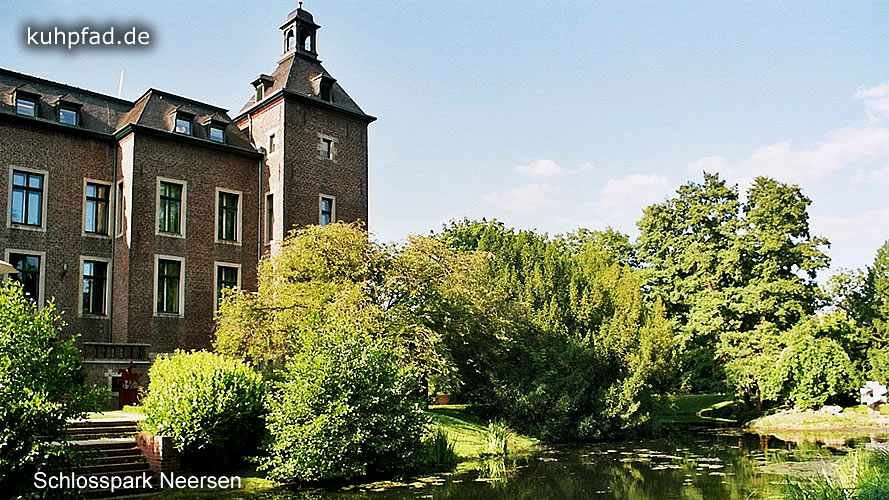 Schlosspark Neersen , am Schloss Neersen liegt ein prächtiger Park, in dem neben einheimischen Bäumen zahlreiche exotische Bäume zu finden sind. Vom Schlossweiher aus führen mehrere Wege durch den Park. Bei einem Rundgang kommt man sowohl an stattlichen Bäumen, Rhododendren, sowie großen Rasenflächen vorbei. Ein Cafe mit Biergarten lädt zudem zum Verweilen ein. Und im Zuge der Landesgartenschau wurde ein Erfahrungsfeld angelegt. Zu erwähnen ist auch das angrenzende biologische Zentrum, und die alljährlichen openair Theateraufführungen (Neersener Festspiele) im Schlosshof.