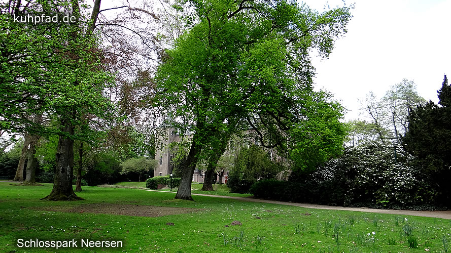 Der Park gehört zum historischen Schloss Neersen, das ursprünglich im 13. Jahrhundert erbaut wurde. Er ist ein idyllischer englischer Landschaftsgarten, der zum Spazieren und Verweilen einlädt. Der Schlosspark ist ein beliebtes Ausflugsziel und insbesondere im Sommer ein Veranstaltungsort.